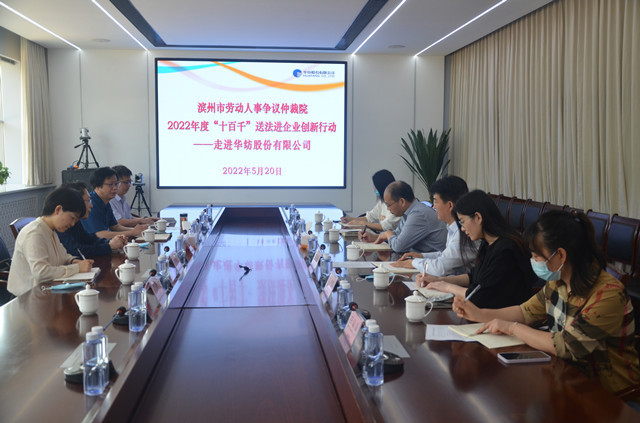 市勞動(dòng)人事爭議仲裁院副院長翟瑞民、勞宏偉,調(diào)解仲裁二庭庭長孫靜,四級(jí)主任科員畢延軍等“送法服務(wù)隊(duì)”一行,在公司副總經(jīng)理趙玉忠、孫玉濤等陪同下,參觀了檢測中心、綜合辦公區(qū)、面料展廳、花布展廳、家紡展廳、創(chuàng)意設(shè)計(jì)中心、工程技術(shù)研究院等區(qū)域。雙方圍繞新形勢(shì)下構(gòu)建和諧勞動(dòng)關(guān)系、推動(dòng)企業(yè)整體發(fā)展等內(nèi)容,進(jìn)行了深入交流與座談。