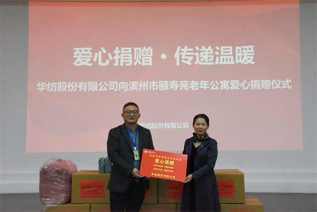 捐贈(zèng)儀式上,鄢院長(zhǎng)對(duì)公司關(guān)愛老人的善德善行表示感謝與敬意。鄢院長(zhǎng)說:“天氣漸冷,華紡的愛心捐贈(zèng)無異于雪中送炭,及時(shí)而又溫暖。”曲偉華表示,讓老人安享晚年是全社會(huì)的責(zé)任,能為老人盡一點(diǎn)綿薄之力,對(duì)公司來說也非常有意義。