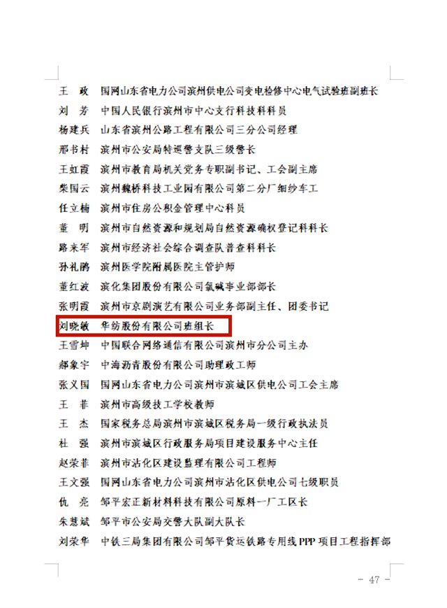 導(dǎo)讀:12月12日,山東省總工會辦公室發(fā)布了《關(guān)于公布2022年度山東省新時代崗位建功勞動競賽標(biāo)兵個人的通知》,公司劉曉敏獲“2022年度山東省新時代崗位建功勞動競賽標(biāo)兵個人”。