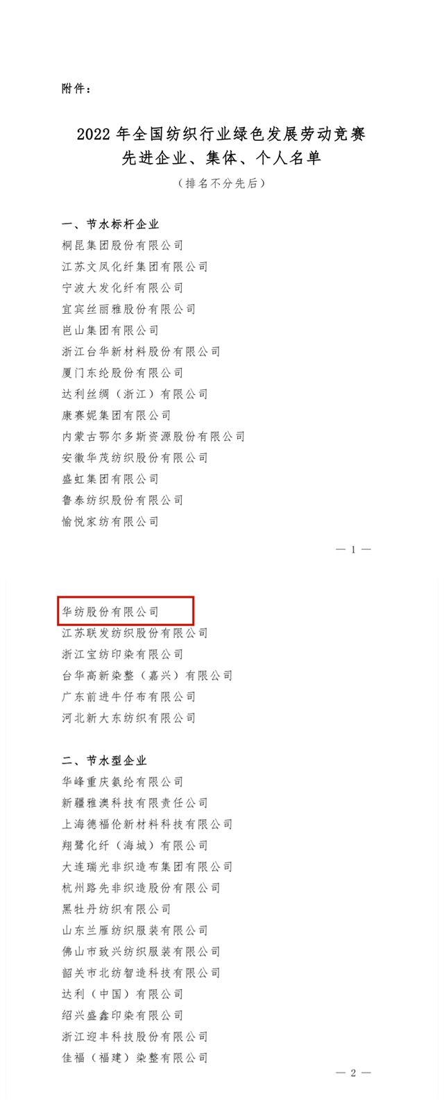 公司在全國紡織行業(yè)綠色發(fā)展勞動競賽中獲佳績