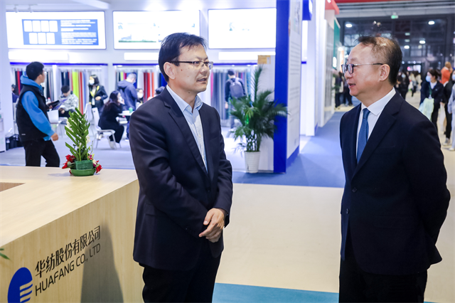 期間,中國紡織工業(yè)聯(lián)合會(huì)會(huì)長孫瑞哲,國家紡織產(chǎn)品開發(fā)中心主任李斌紅,國家紡織產(chǎn)品開發(fā)基地秘書處秘書長、中國紡織信息中心產(chǎn)品開發(fā)部主任陳小麗等到公司展位觀展。在與公司黨委書記、董事長盛守祥及服裝面料分公司總經(jīng)理王超交流中,孫瑞哲提到,華紡作為中國紡織印染行業(yè)的龍頭骨干企業(yè),要加強(qiáng)與參展企業(yè)交流溝通,既要展現(xiàn)公司魅力,又要做好信息交換、交流學(xué)習(xí)等相關(guān)工作,抓住機(jī)會(huì),拓展品牌影響力,為公司開拓市場、擴(kuò)大知名度,實(shí)現(xiàn)從制造加工向品牌創(chuàng)意的轉(zhuǎn)型升級(jí)夯實(shí)基礎(chǔ)。