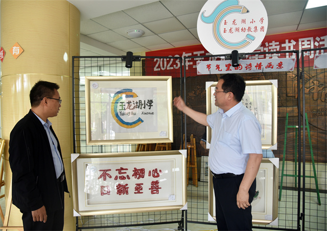 玉龍湖小學(xué)校長張盛群接待了孫玉濤一行并介紹了學(xué)校發(fā)展情況、辦學(xué)特色以及培養(yǎng)模式進(jìn)行了全面的講解與介紹。