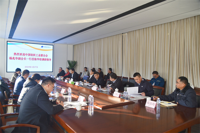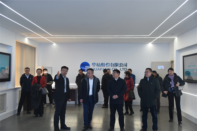 1月27日,中國紡織工業(yè)聯(lián)合會副會長楊兆華一行到華紡股份調(diào)研指導(dǎo)工作。市工信局黨組書記、局長姚振祥,濱城區(qū)副區(qū)長袁見,公司黨委書記、董事長盛守祥陪同調(diào)研。