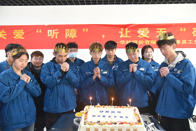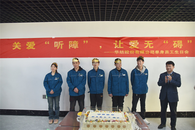 3月28日,公司黨委、工會(huì)、團(tuán)委、關(guān)工委聯(lián)合舉辦了以“關(guān)愛(ài)‘聽(tīng)障’”,讓愛(ài)無(wú)‘礙’”為主題的華紡股份有限公司單身員工生日會(huì)。公司黨委委員、人力行政副總經(jīng)理孫玉濤,工會(huì)、團(tuán)委、關(guān)工委主要負(fù)責(zé)同志、服裝車(chē)間相關(guān)負(fù)責(zé)同志以及30名聽(tīng)障員工參加活動(dòng)。