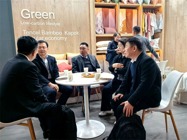 展會(huì)首日,中國(guó)紡織工業(yè)聯(lián)合會(huì)副會(huì)長(zhǎng)楊兆華等領(lǐng)導(dǎo)專程到華紡股份展位參觀指導(dǎo)。領(lǐng)導(dǎo)們認(rèn)真聽(tīng)取了家紡公司總經(jīng)理成汝海對(duì)家紡產(chǎn)品的介紹,仔細(xì)觀看了解了各類(lèi)展品。楊兆華副會(huì)長(zhǎng)對(duì)華紡股份有限公司在產(chǎn)業(yè)升級(jí)、產(chǎn)品結(jié)構(gòu)調(diào)整方面取得的成績(jī)給予了充分肯定,希望公司繼續(xù)加大研發(fā)投入,提升產(chǎn)品科技含量和附加值,進(jìn)一步加強(qiáng)品牌建設(shè),提高中國(guó)家紡產(chǎn)品在國(guó)際市場(chǎng)的知名度和影響力。