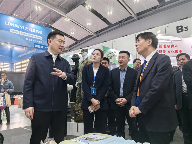 展會(huì)期間,教育部關(guān)心下一代工作委員會(huì)常務(wù)副主任王富,濱州市委常委、副市長(zhǎng)屈躍寬等領(lǐng)導(dǎo)來(lái)到公司展位前參觀指導(dǎo),詳細(xì)了解了產(chǎn)品的核心優(yōu)勢(shì)和應(yīng)用價(jià)值。領(lǐng)導(dǎo)們對(duì)公司在教育紡織品領(lǐng)域的創(chuàng)新能力和技術(shù)優(yōu)勢(shì)給予了充分肯定,并對(duì)公司未來(lái)在教育領(lǐng)域的發(fā)展寄予厚望。